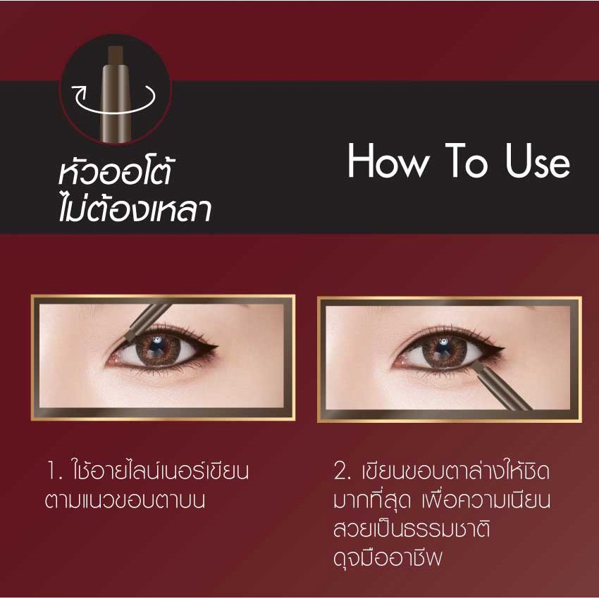 สมูทแอนด์สลิมอินเนอร์อายไลน์เนอร์ บราวอิท น้องฉัตร 0.1g บราวอิท บายน้องฉัตร สมูท แอนด์ สลิม อินเนอร์ อายไลเนอร์ เนื้อครีมอัดแข็ง เขียนง่าย หัวดินสอขนาดเรียวเล็กเพียง 2 มิลลิเมตร ช่วยให้เส้นไลน์เนอร์เรียบเนียน สีสวยคมชัด กันน้ำ กันเหงื่อ มาพร้อมกับหัวหมุนแบบออโต้ โดยน้องฉัตร ช่างแต่งหน้ามืออาชีพของเมืองไทย
